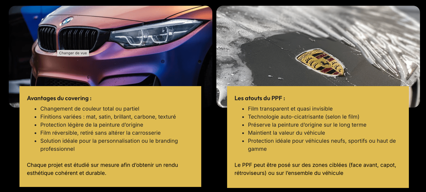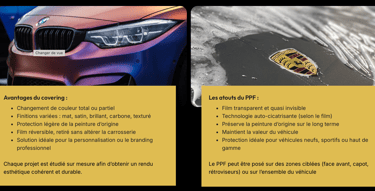 Ces solutions haut de gamme allient esthétique, protection et durabilité, tout en respectant l’intégrité de votre peinture d’origine.